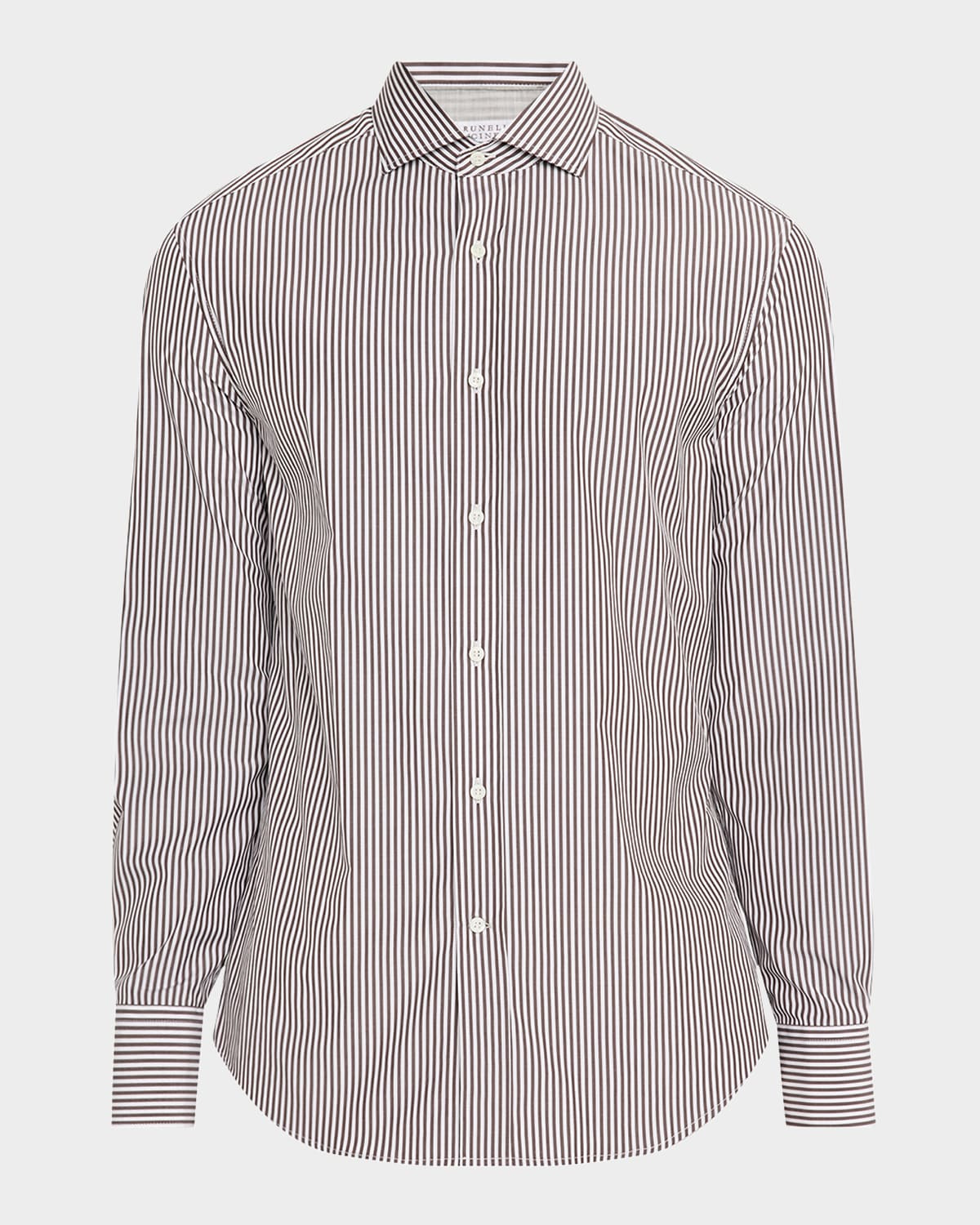 - Brunello Cucinelli shirt in woven poplin with narrow stripes - Spread collar; button front - Long sleeves - Close-fitting lines through the chest characterize the slim fit - Shirttail hem - Cotton - Made in Italy