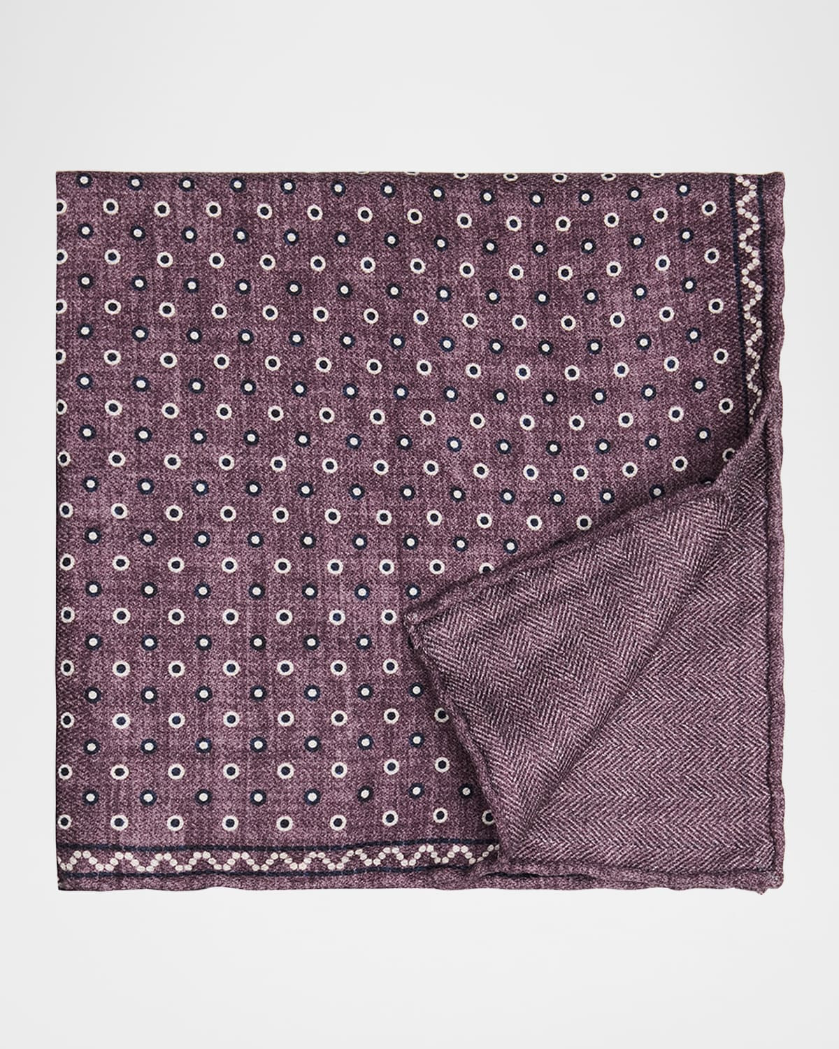 Brunello Cucinelli doublefaced pocket square showcasing a polka dot print with dotted border detailing Microchevron pattern on the reverse side May be styled multiple ways Silk Hand wash or dry clean Made in Italy