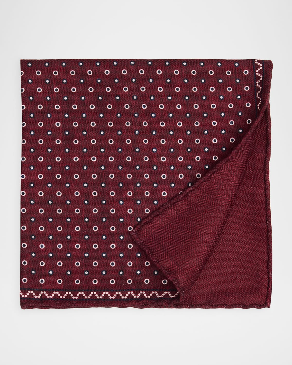 Brunello Cucinelli doublefaced pocket square showcasing a polka dot print with dotted border detailing Microchevron pattern on the reverse side May be styled multiple ways Silk Hand wash or dry clean Made in Italy