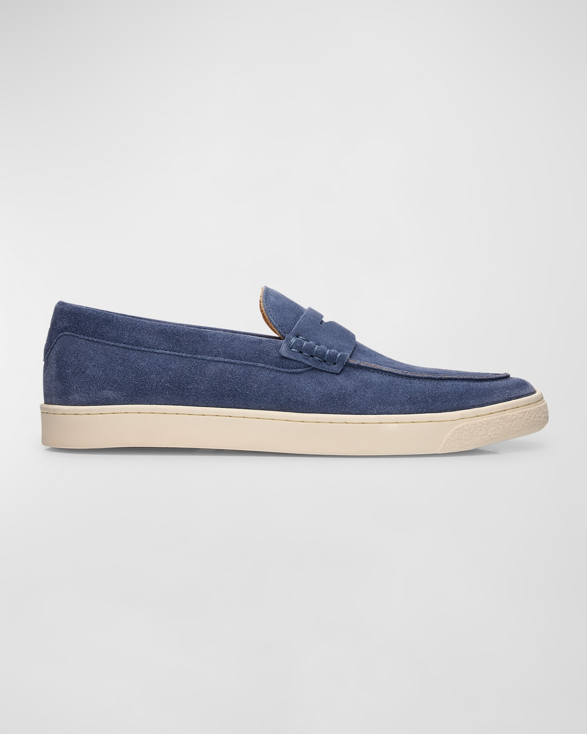 - Brunello Cucinelli loafers in supple suede - Flat heel - Round moc toe - Penny keeper strap - Backstay with foiled logo emblem - Rubber sole - Slip-on style - Made in Italy