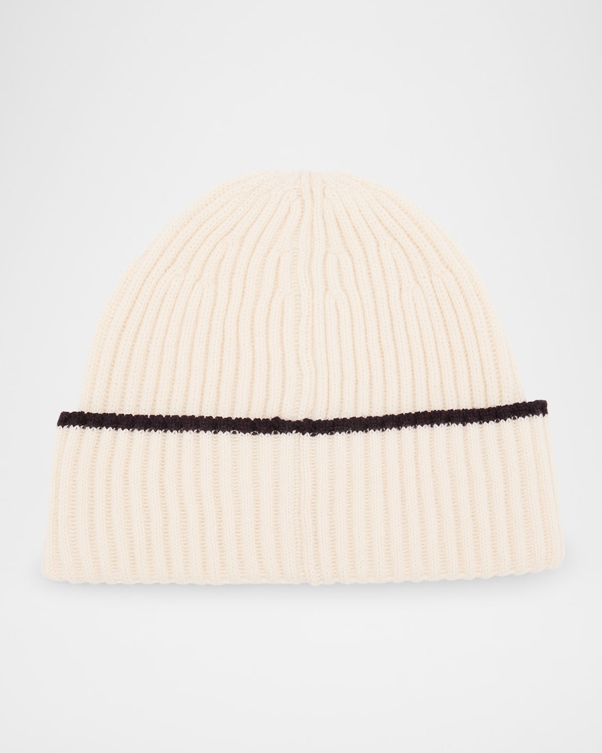 Brunello Cucinelli ribbed beanie hat in ultrasoft cashmere, accented with contrast tipping Cashmere Hand wash or dry clean Made in Italy