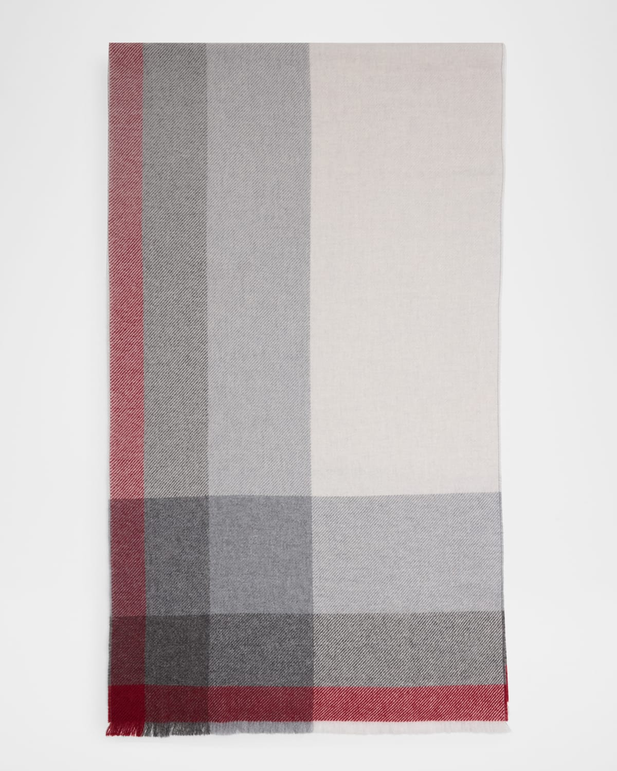 Brunello Cucinelli uneven plaid scarf in a luxurious woolcashmere blend Features eyelash fringe trim Wool/cashmere Hand wash or dry clean Made in Italy