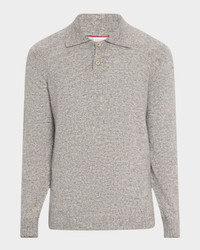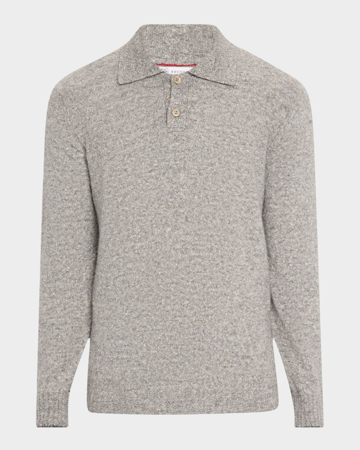 - Brunello Cucinelli polo sweater in a warm wool blend resulting in a melange finish - Spread collar - Two-button placket - Long sleeves - Ribbed cuffs and hem - Pullover style - Wool/nylon/polyamide - Made in Italy