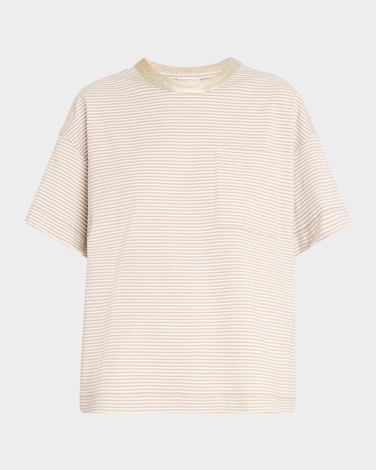 - Brunello Cucinelli striped jersey T-shirt featuring a metallic collar detail - Crew neckline - Short sleeves - Chest patch pockets - Loose fit - Pullover style - Cotton - Made in Italy