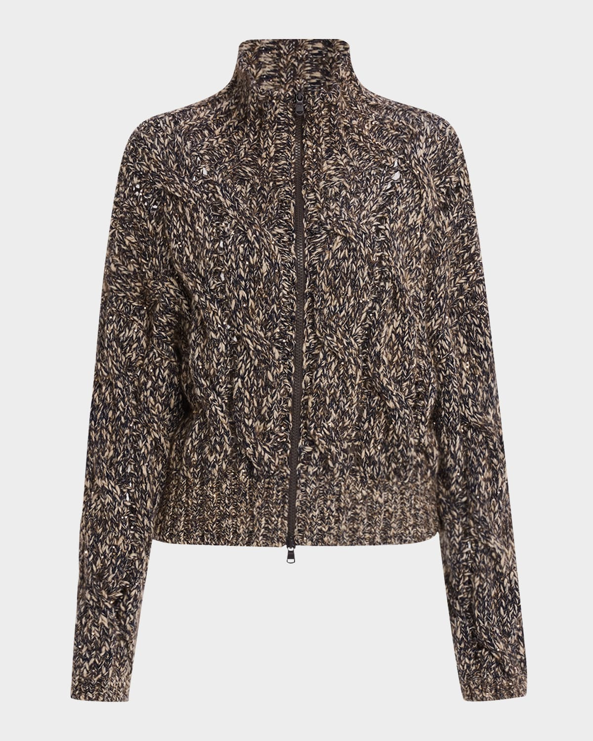 Paillette Marbled Mohair Cable Knit Zip Cardigan