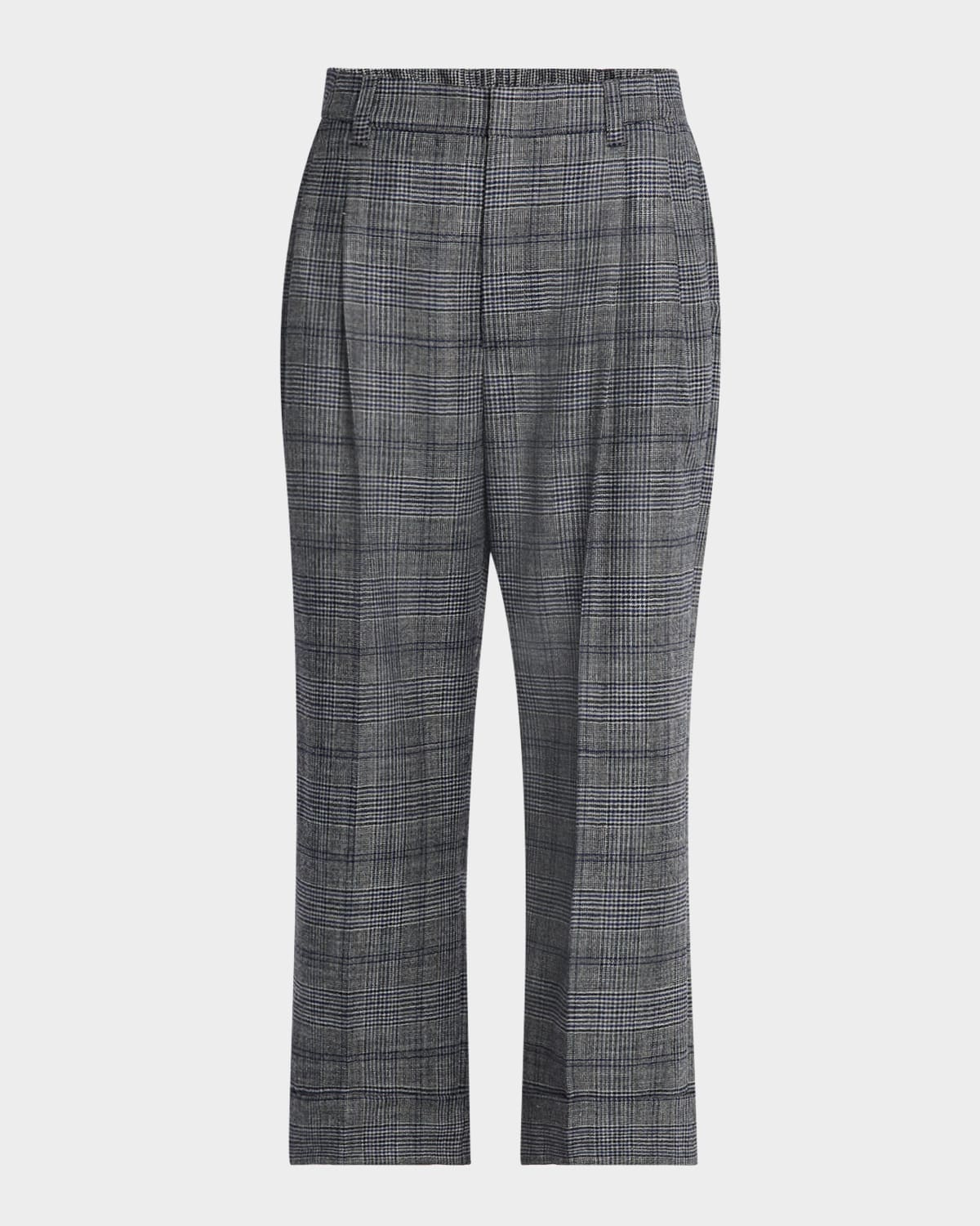 Pleated Wool Prince Of Wales Wide-Leg Crop Trousers