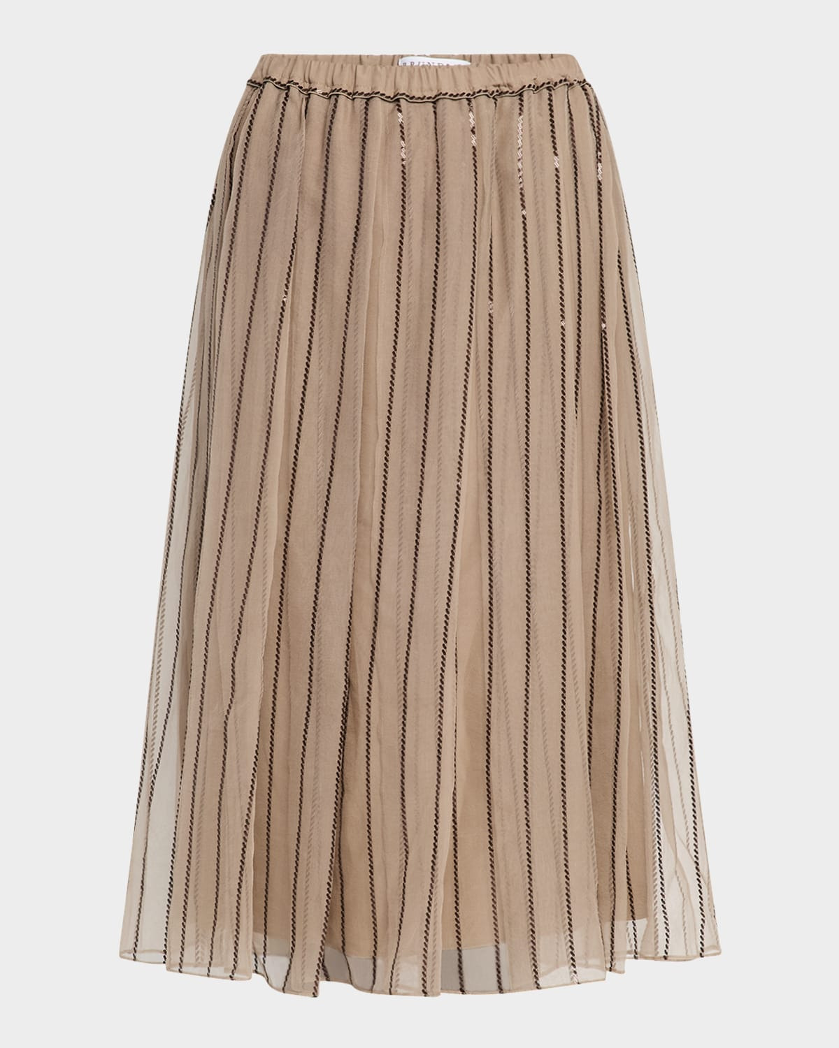 - Brunello Cucinelli crispy chiffon skirt finished with pleating, regimental pailette embellishment, and an elasticized waistband - Mid waist - Hem falls below the knee - A-line silhouette - Pull-on style - Silk - Made in Italy