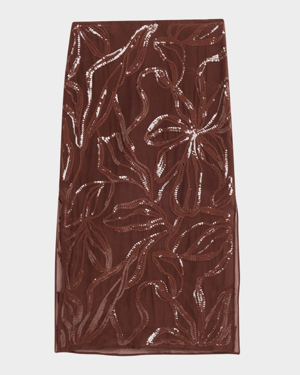 - Brunello Cucinelli silk georgette skirt embellished with sequin embroidery - High waist - Hem falls below the knee - A-line silhouette - Side zip - Side slits - Silk - Made in Italy