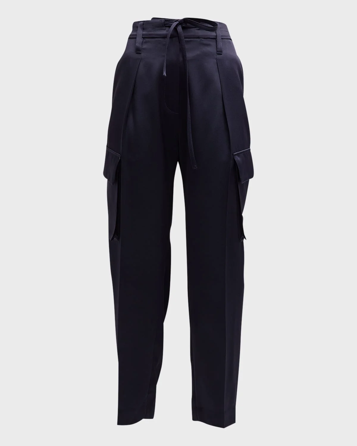 Straight-Leg Ankle Satin Cargo Pants