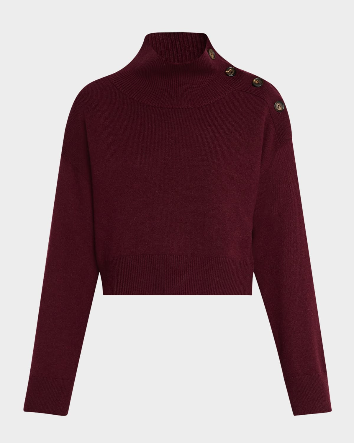 Turtleneck Button-Shoulder Cashmere Crop Sweater