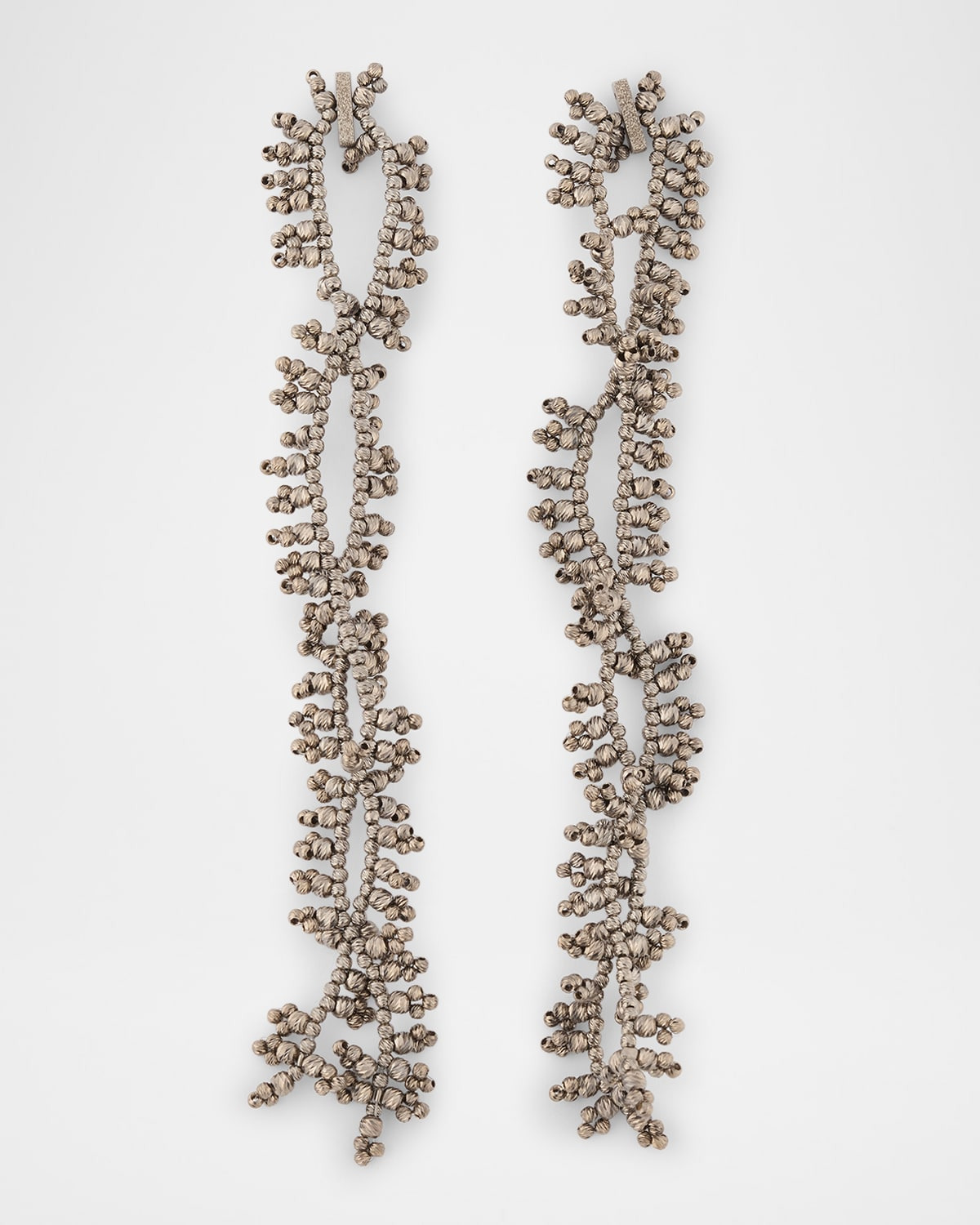 - Brunello Cucinelli drop earrings in twisted loops of textured silver beading - For pierced ears - Post backs - Made in Italy