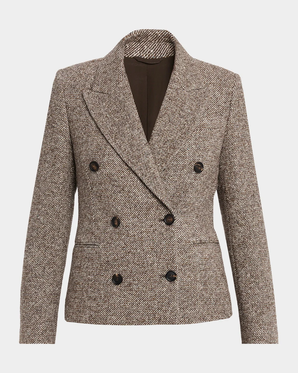 Virgin Wool and Silk Melange Diagonal Double-Breasted Blazer
