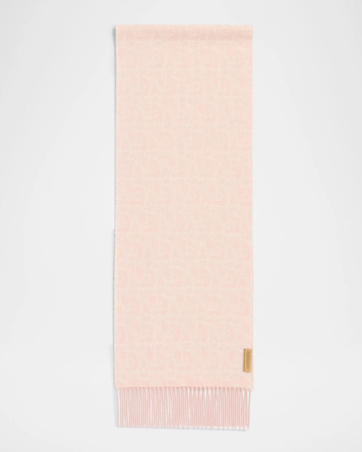 Burberry scarf, jacquardwoven with a B charm pattern. A Suede tag with embossed logo lettering at the side completes this ultrasoft style. Approx. 66"L x 12.0"W May be styled multiple ways Cashmere/leather Professional cleaning recommended Trim: Suede Imported