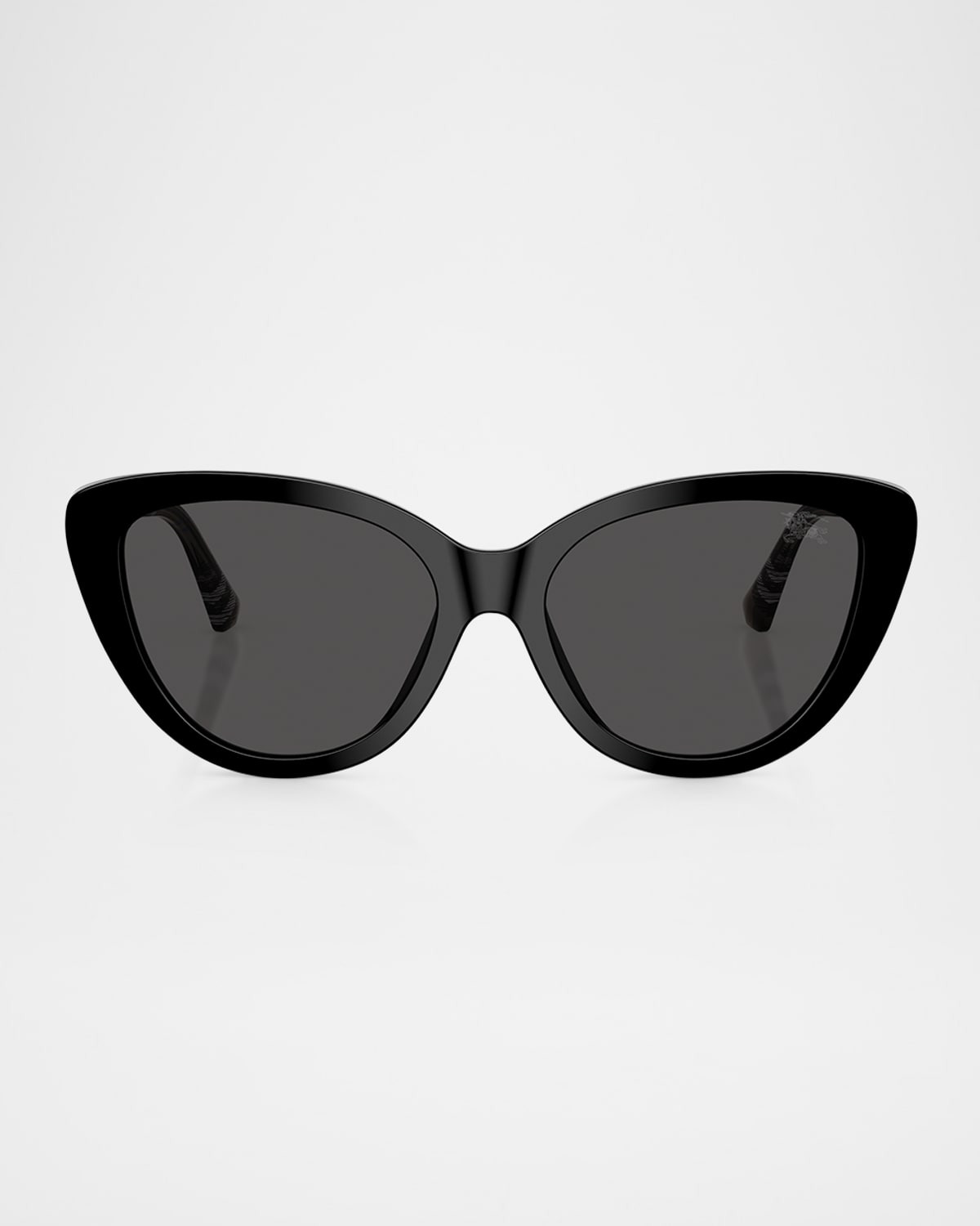 - Burberry "BE4457F" cat-eye sunglasses in acetate - Eye/bridge/temple (in mm): 55-17-140 - Solid lenses - Saddle nose bridge - Thin, tapered arms - Logo at the temples - Comes with case and cleaning cloth - Acetate - Spot clean - 100% UVA/UVB protection - Made in Italy - Proposition 65 warning for California residents