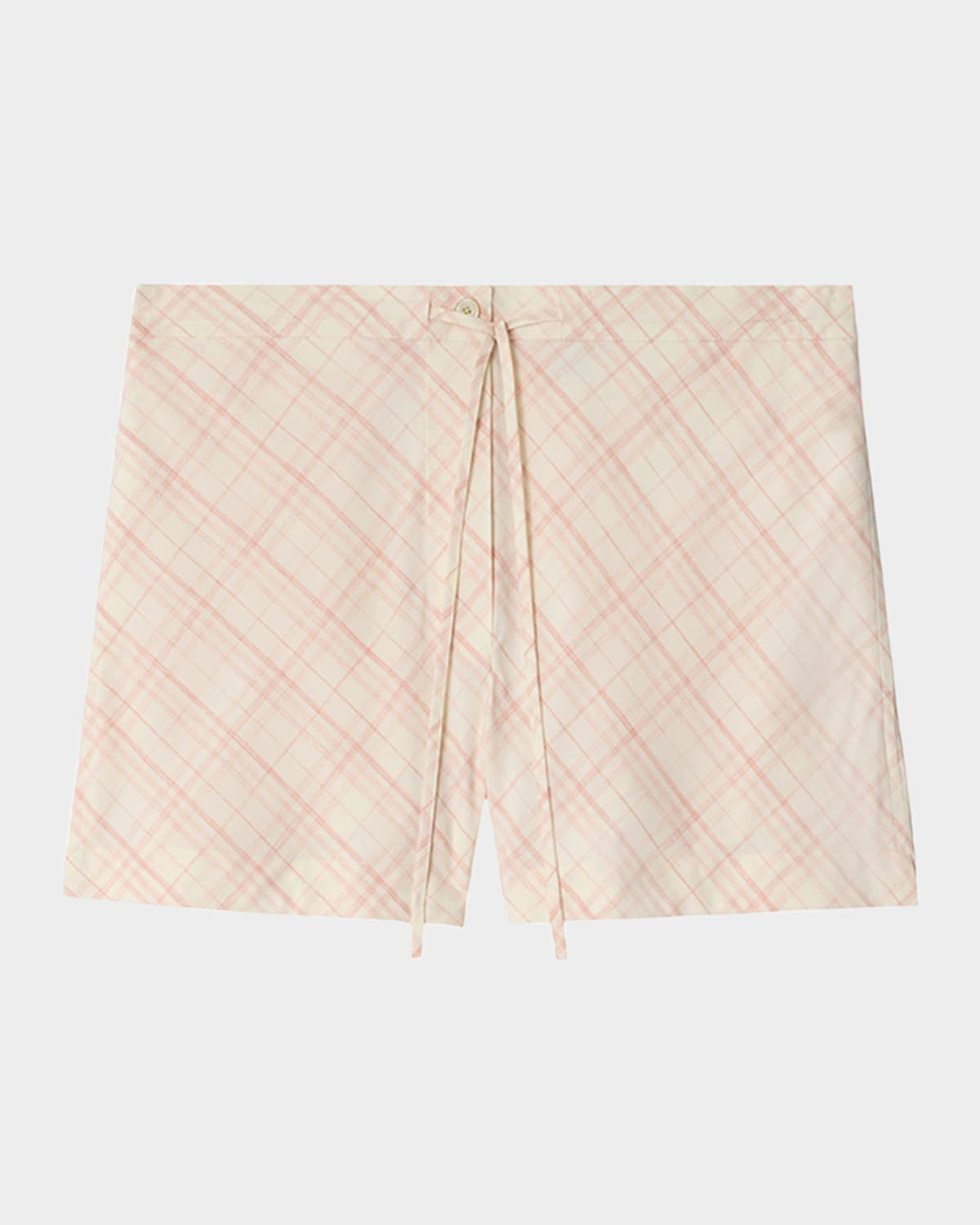 - Burberry pajama shorts made from Italian-woven cotton with a watercolour-effect signature check and an ekd embroidered back detail - Mid rise sits high on hip - Drawstring waistband - Side slip pockets - Back welt pocket - Easy legs - Pull-on style - Cotton - Made in Romania
