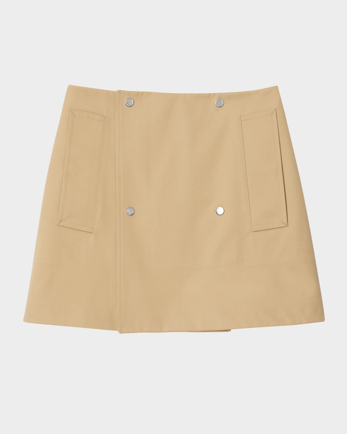- Burberry skirt featuring a double breasted front - High waist - Hip welt pockets - Mini length - A-line silhouette - Snap-button front - Nylon/polyamide/cotton - Made in Italy