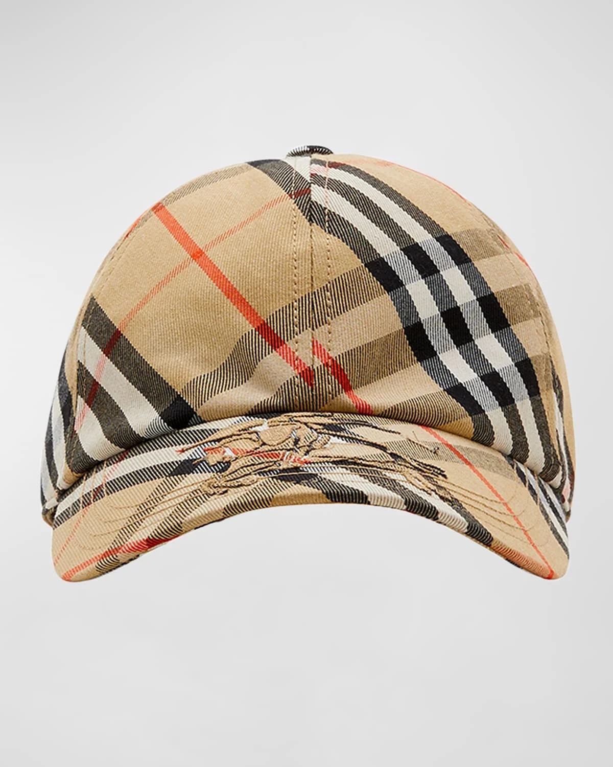 • Burberry check baseball cap in polyester and cotton • Round crown • Embroidered EKD design • Curved brim • Glide buckle closure • Made in Italy Online Inquiries: NMS21_NBZQH Store Inquiries: #4751755