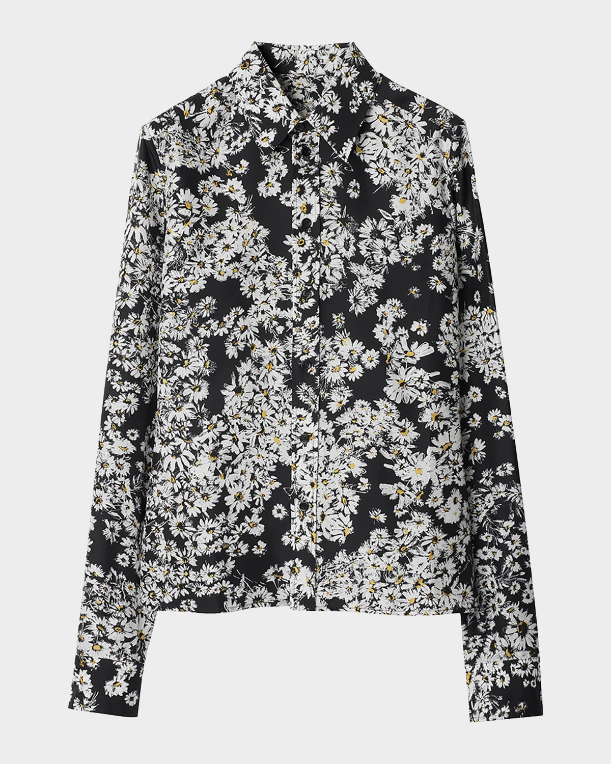 Burberry top in flower print Spread collar; button front Long sleeves; button cuffs Relaxed fit Silk Dry clean Made in Italy