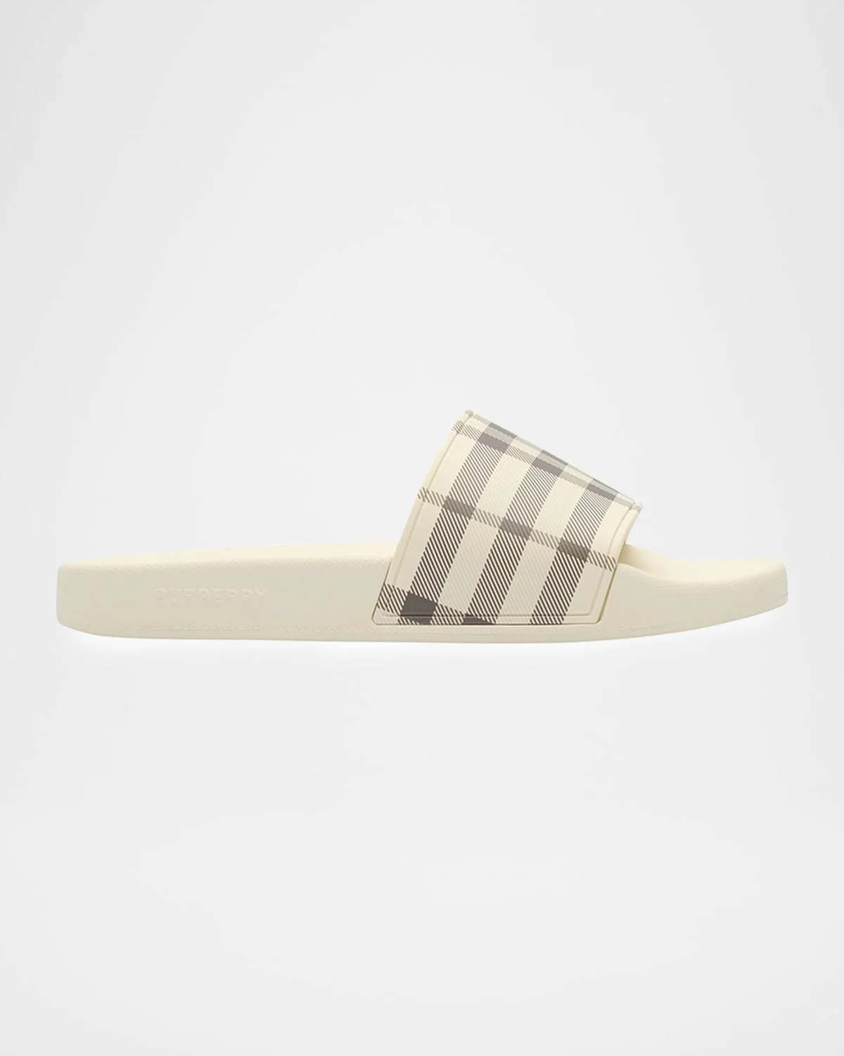 Crafted of polyurethane, the "Furley" slides by Burberry are printed with the signature Burberry Check on the upper. Flat heel Round, open toe Contoured insole for comfort Polyurethane outsole Made in Italy