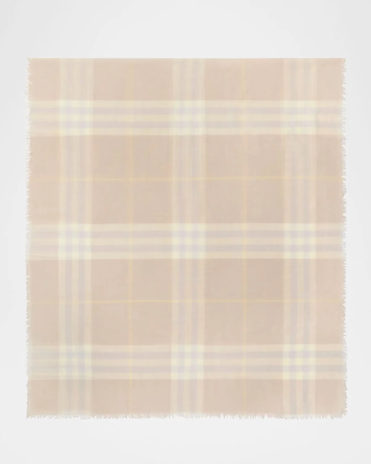 - Burberry lightweight scarf designed with the house's iconic check pattern - Approx. 35.4"W x 78.7"L - Eyelash fringing on the edges - Wool - Professional cleaning recommended - Made in Italy