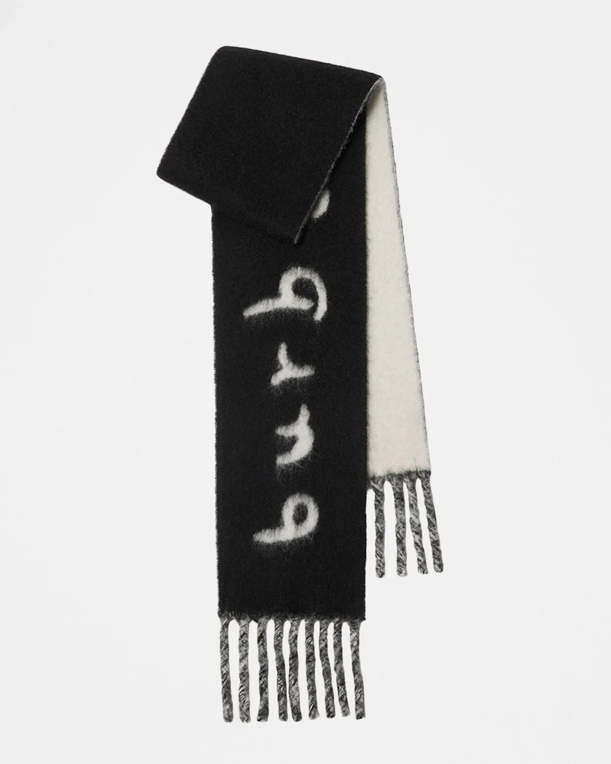 Jacquardwoven with Burberry lettering, this reversible woolblend scarf is finished with chunky twisted fringing. Approx. 73"L x 8"W May be styled in multiple ways Alpaca wool/nylon Professional cleaning recommended Made in Italy