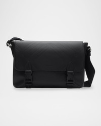 Men's Check Embossed Leather Messenger Bag