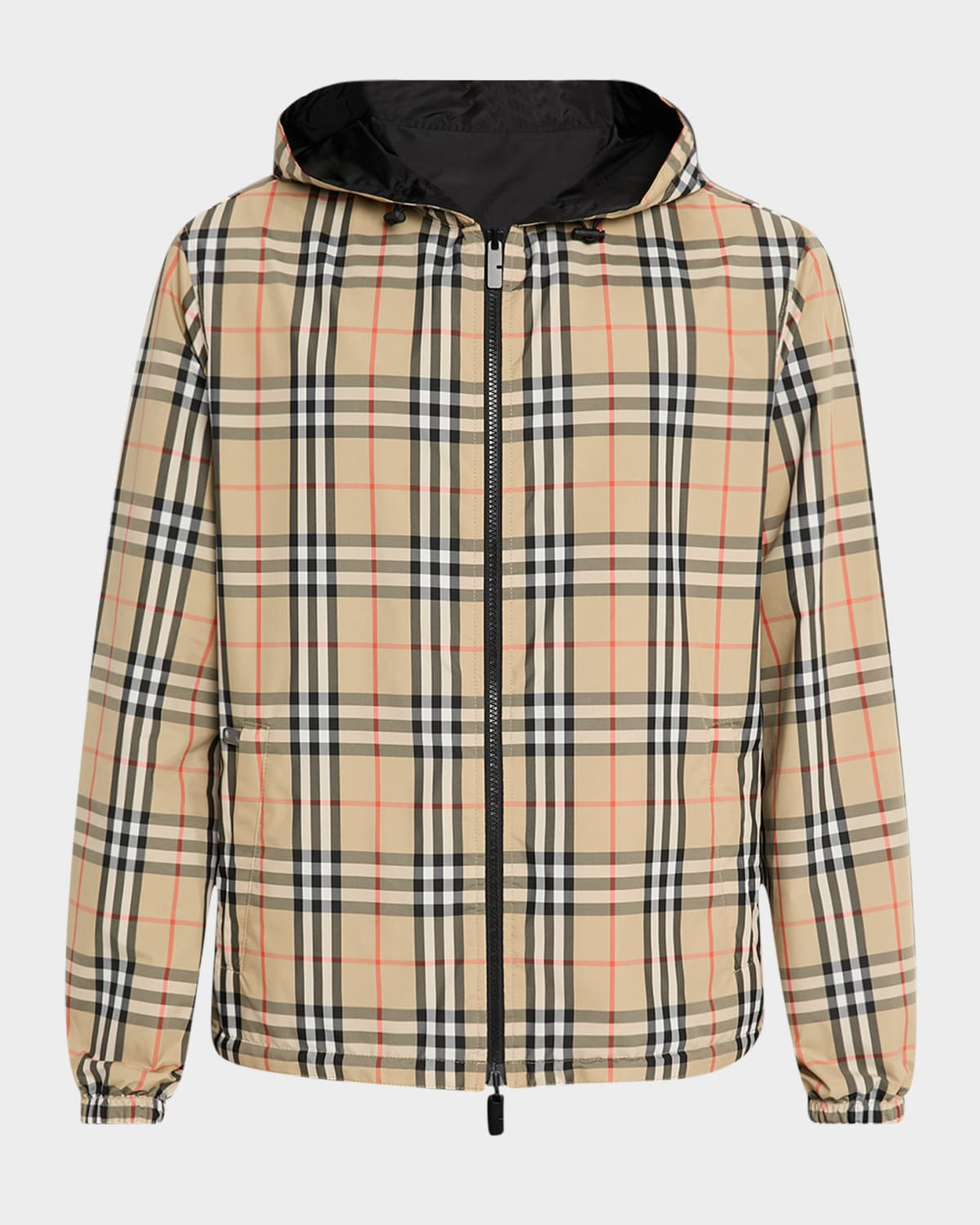 - Burberry jacket showcasing the distinctive Vintage check - Hooded drawstring neckline - Two-way zip front - Side zip pockets - Long sleeves - Elasticized cuffs - Polyester - Lining: Nylon - Dry clean - Imported
