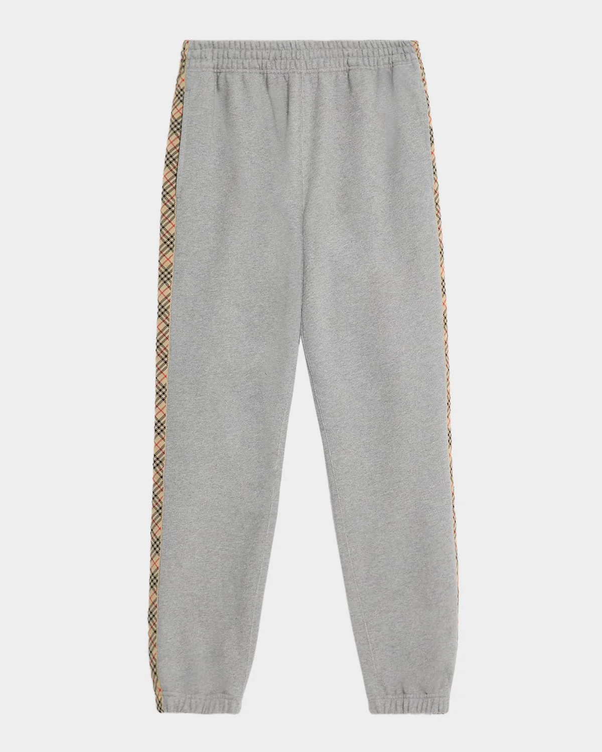 These Burberry jogging pants are crafted from lightweight loopback cotton and framed with Check taping in the signature archive beige colourway. Tonal Equestrian Knight Design embroidery Regular rise Side slip pockets Back patch pocket; embroidered EKD Relaxed fit through tapered legs Elasticized cuffs Elasticated drawcord waistband Pullon style Cotton Lining: Cotton Machine wash cold Made in Italy