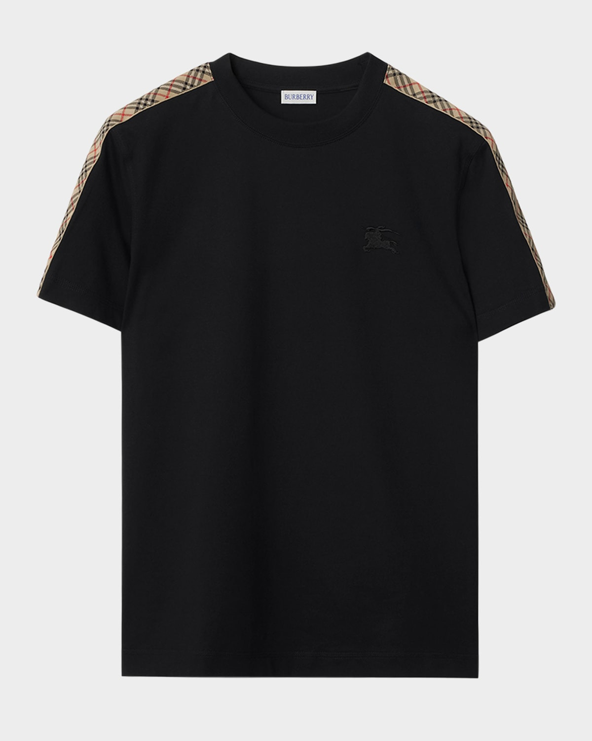 - Burberry T-shirt made from lightweight jersey - Crew neckline - Tonal Equestrian Knight Design at chest - Short sleeves with signature check taping - Slim fit - Pullover style - Cotton - Imported
