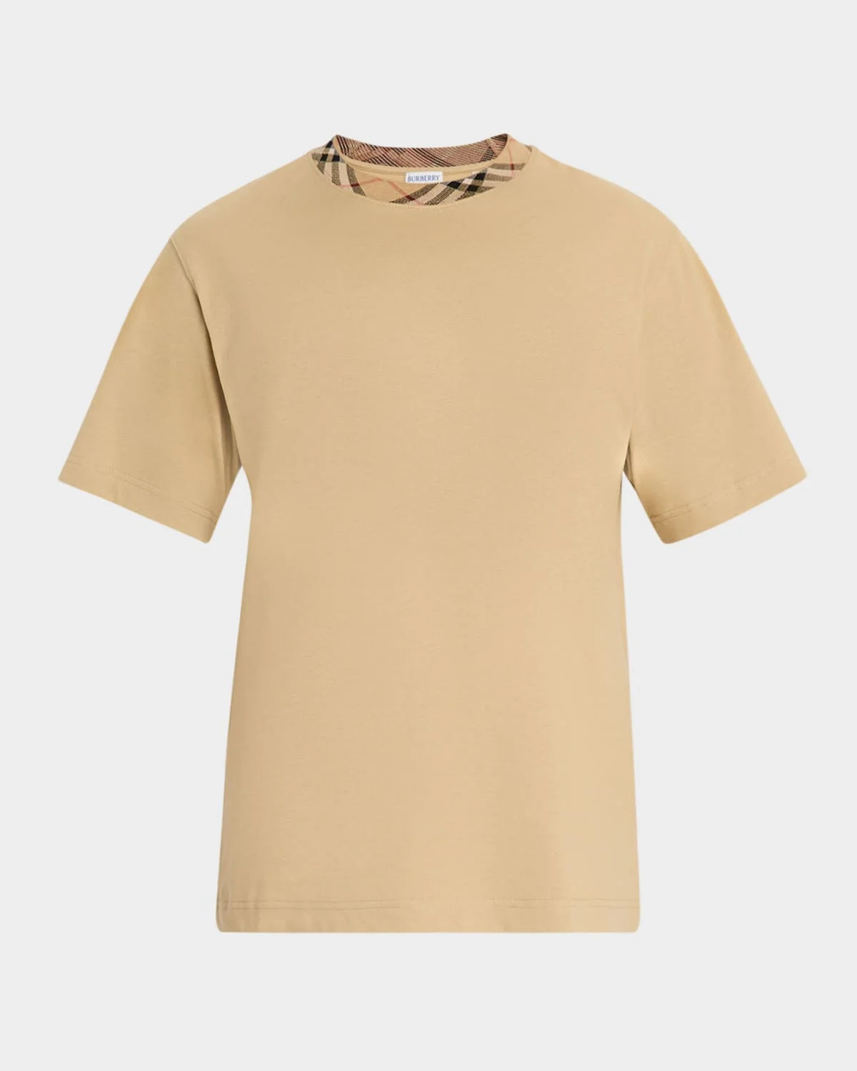 - Burberry T-shirt highlighted with signature Check taping on the neckline in the archive beige colorway - Short sleeves - Pullover style - Cotton - Machine wash - Made in Portugal