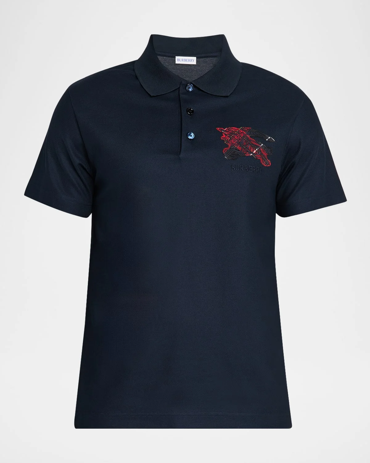 A polo shirt by Burberry in lightweight cotton pique, embroidered with the signature logo and Equestrian Knight Design on a Burberry Check backdrop Spread collar Threebutton placket Short sleeves Vented sides Pullover style Slim fit Cotton Made in Portugal
