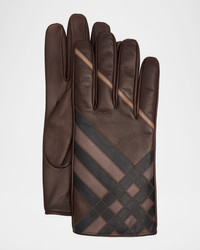 Burberry gloves crafted of leather panels, intricately cut and handstitched to form an intarsia check pattern Leather/silk Lining: Cashmere Professional cleaning recommended Made in Italy
