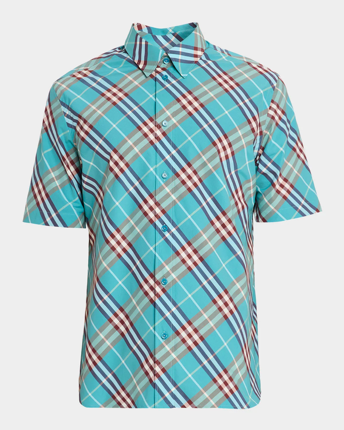 Men's Relaxed-Fit Check Cotton Short-Sleeve Shirt