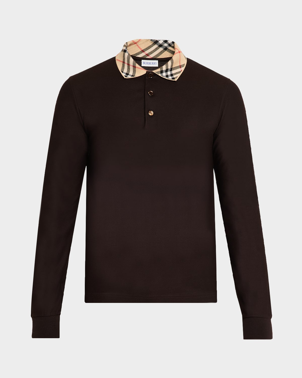 Men's Slim Cotton Check-Collar Long-Sleeve Polo Shirt