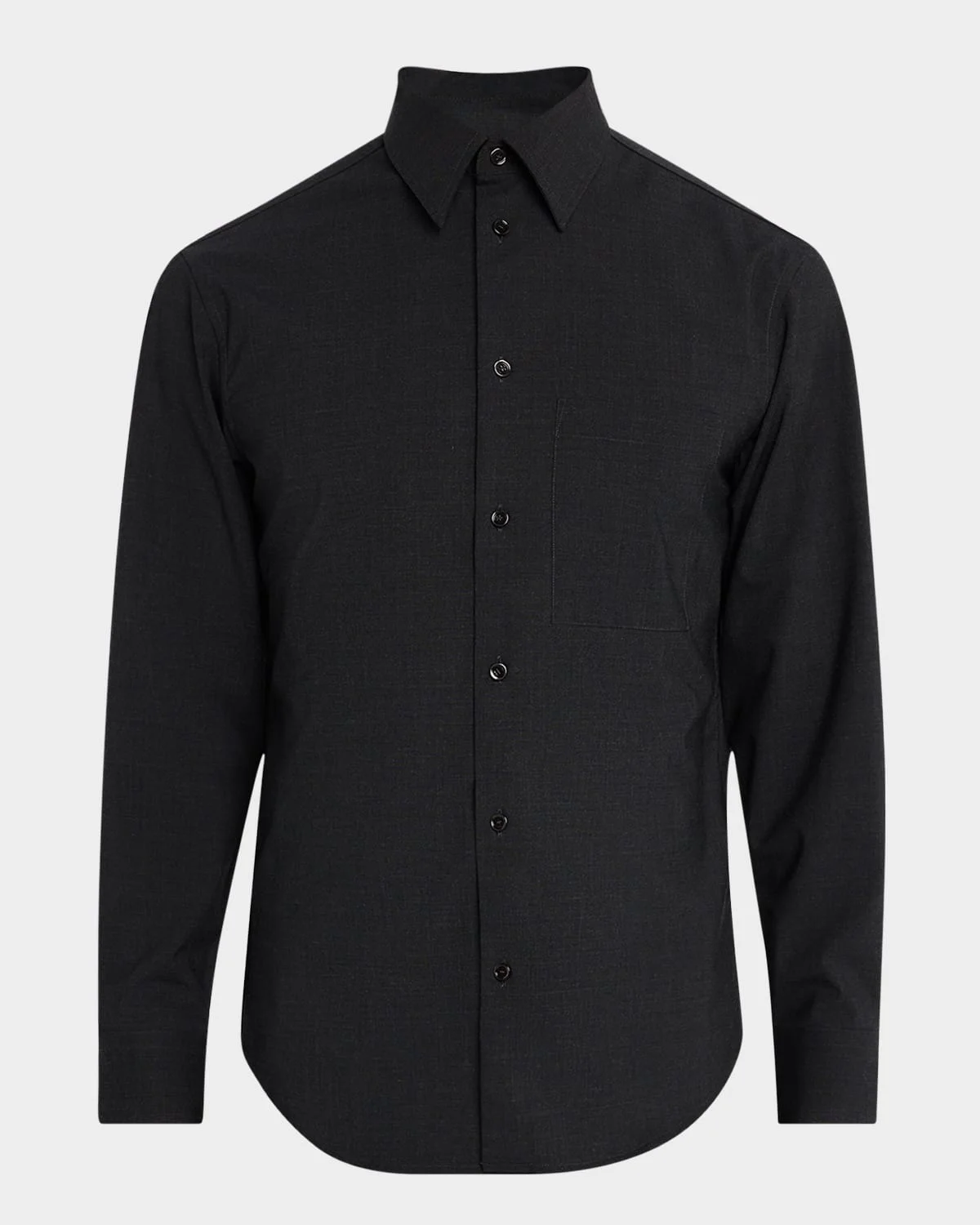 - Burberry sport shirt in solid wool with a hint of stretch - Point collar - Button placket - Chest patch pocket - Long sleeves - Yoked back shoulders - Shirttail hem - Wool/elastane - Made in Italy - Model is 6'1"/185cm.