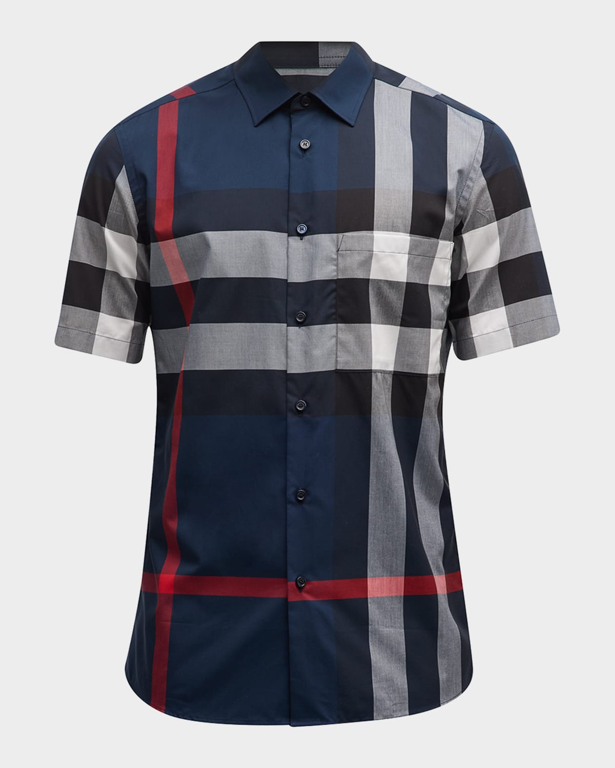 - Burberry "Summerton" shirt in signature check - Point collar; button placket - Chest patch pocket - Short sleeves - Yoked back shoulders - Cotton - Imported - Model is 6'1"/185cm.