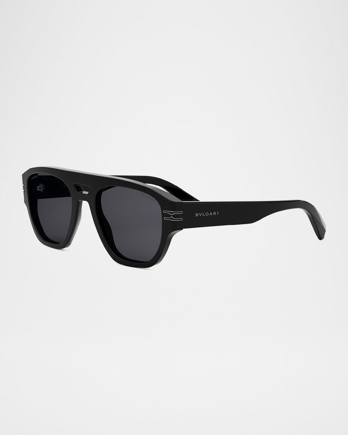 - BVLGARI "B.Zero1" aviator sunglasses in acetate and nylon - Lens/bridge/temple (in mm): - 53-20-145 - Solid-color lenses - Left lens logo script - Double-nose bridge - Logo on temples - Acetate - 100% UVA/UVB protection - Made in Italy - Proposition 65 warning for California residents - This product contains perfluoroalkyl and polyfluoroalkyl substances (PFAS). For more information, please visit the manufacturer’s website.