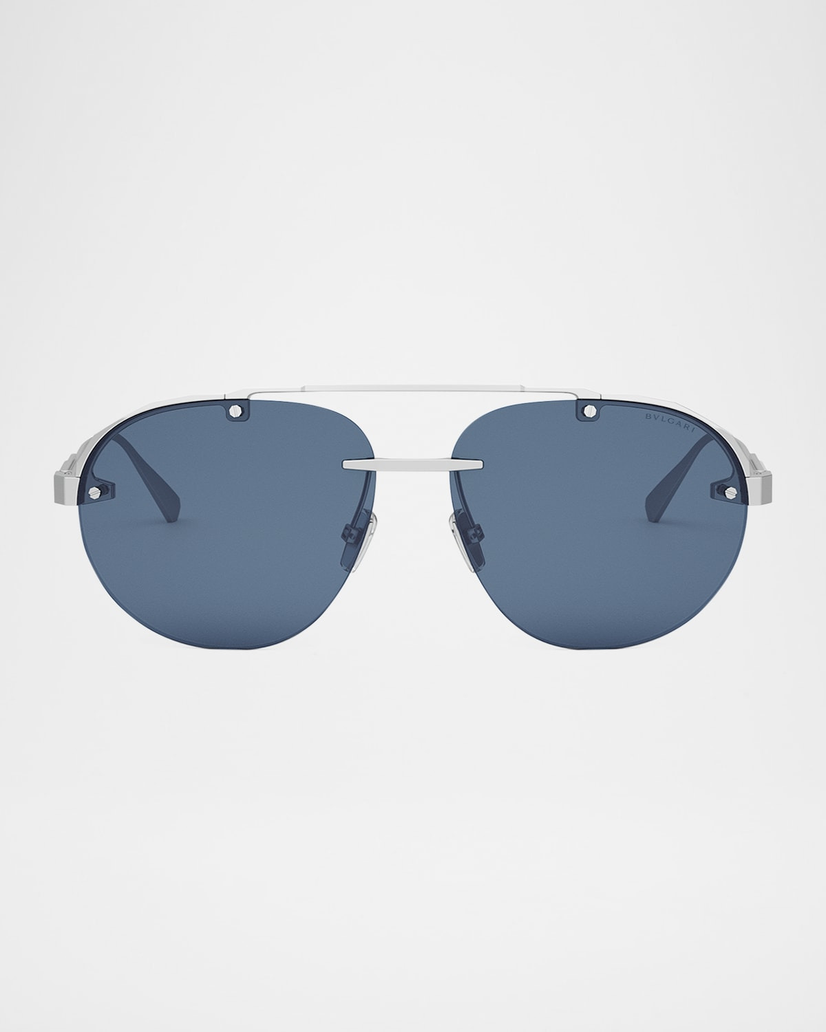 - BVLGARI round sunglasses in titanium - Lens/bridge/temple (in mm): - 0-14-145 - Solid-color lenses - Left lens with lasered logo - Double-nose bridge - Adjustable nose pads - Lasered logo on temples - Thin, tapered arms - Titanium - 100% UVA/UVB protection - Made in Japan - Proposition 65 warning for California residents