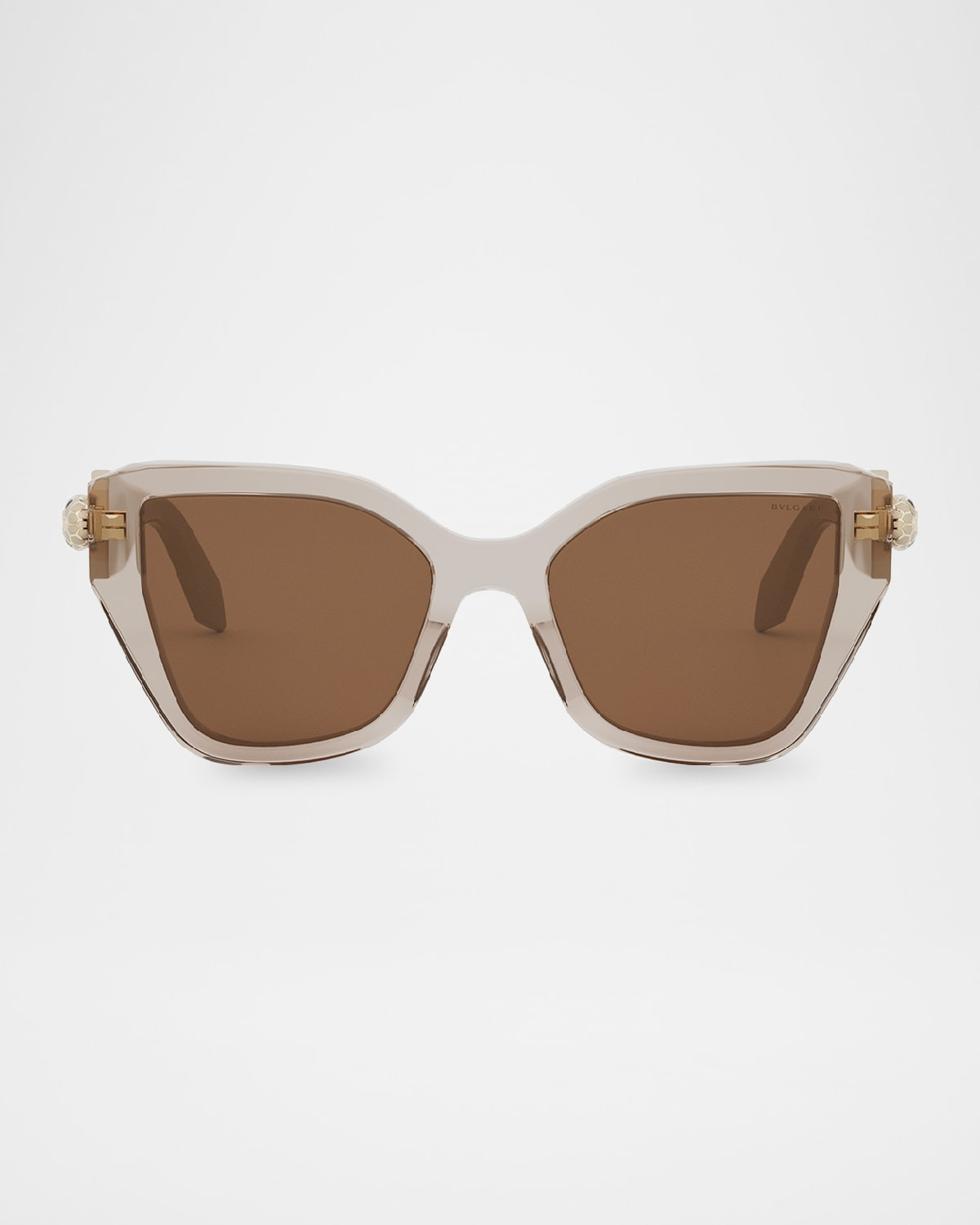 - BVLGARI "Serpenti" butterfly sunglasses in acetate - Under-lacquer metal logo outside on both temples and lasered logo on lens - Lens/bridge/temple (in mm): 53-19-140 - Gradient lenses - Wide, tapered arms - Hand wash - 100% UVA/UVB protection - Made in Italy - Proposition 65 warning for California residents - This product contains perfluoroalkyl and polyfluoroalkyl substances (PFAS). For more information, please visit the manufacturer’s website.