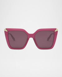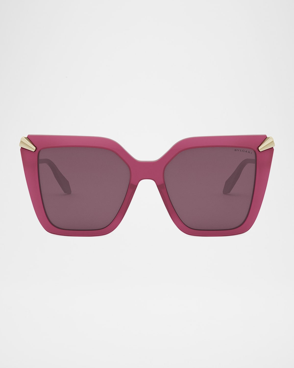 - BVLGARI "BV40002IW" butterfly sunglasses in acetate, metal, and nylon/polyamide - Oversized rectangular shape with sinuous and sleek Serpenti temples, for a recognizable Bvlgari style - Lens/bridge/temple (in mm): 55-18-140 - Solid lenses; logo on corner - Saddle nose bridge - Thin, wavy arms - Hand wash - 100% UVA/UVB protection - Made in Italy - Proposition 65 warning for California residents