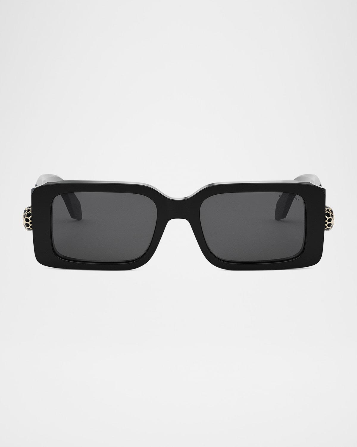 - BVLGARI sunglasses in acetate - Under-lacquer metal logo outside on both temples - Eye/bridge/temple (in mm): 37-19-140 - Eyewear style: Rectangle - Acetate - 100% UVA/UVB protection - Made in Italy - Proposition 65 warning for California residents