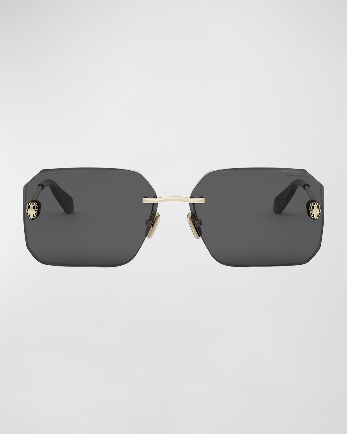 - BVLGARI "Serpenti Forever" rimless geometric square sunglasses in metal - Lens/bridge/temple (in mm): 62-14-140 - Solid lenses; embellished snakeheads - Adjustable nose pads - Thin, tapered arms - Hand wash - 100% UVA/UVB protection - Made in Italy - Proposition 65 warning for California residents