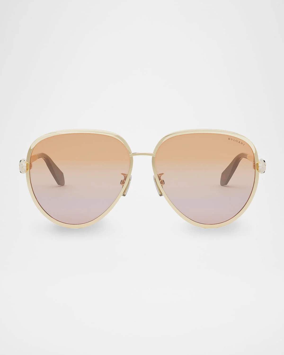 - BVLGARI sunglasses in metal - Lasered logo on metal temples, and on lens - Eye/bridge/temple (in mm): 54.1-13-140 - Eyewear style: Aviator - Metal - 100% UVA/UVB protection - Made in Italy - Proposition 65 warning for California residents