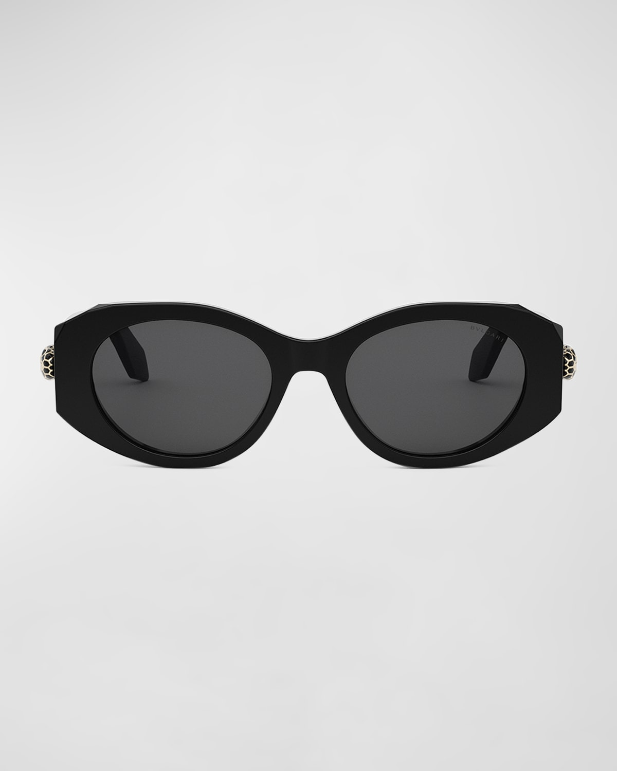 - BVLGARI "BV40007IW" oval sunglasses in acetate, metal, and nylon/polyamide - Iconic snake head positioned on shorter temples with an eye-catching front shape - Lens/bridge/temple (in mm): 63-15-140 - Saddle nose bridge - Logo on temples - Wide, tapered arms - Hand wash - 100% UVA/UVB protection - Made in Italy - Proposition 65 warning for California residents