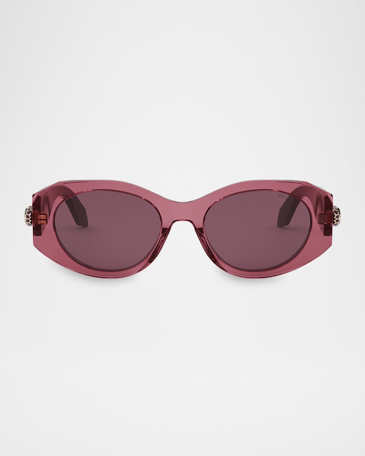 - BVLGARI "BV40007IW" oval sunglasses in acetate, metal, and nylon/polyamide - Iconic snake head positioned on shorter temples with an eye-catching front shape - Lens/bridge/temple (in mm): 63-15-140 - Saddle nose bridge - Logo on temples - Wide, tapered arms - Hand wash - 100% UVA/UVB protection - Made in Italy - Proposition 65 warning for California residents
