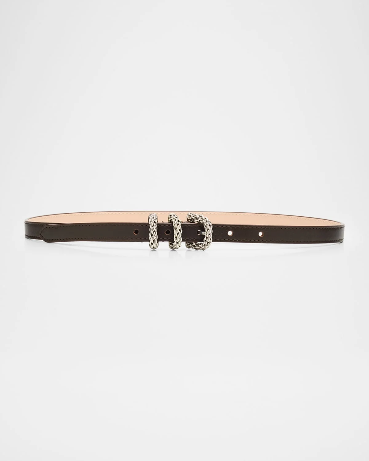 BY FAR "Kat" cowhide belt embellished with tonal pickstitching and braided silvertone buckles Adjustable fastening Buckle closure Leather Made in Bulgaria