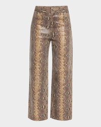 - By Malene Birger "Cailys" trousers made in supple snake-embossed leather - Approx. measurements: - 10" rise; 27" inseam - High-rise sits high on the hips - Flat front - Four-pocket style - Cropped at the ankle - Wide, straight legs - Button/zip fly; belt loops - Leather - Leather method dry cleaning - Imported