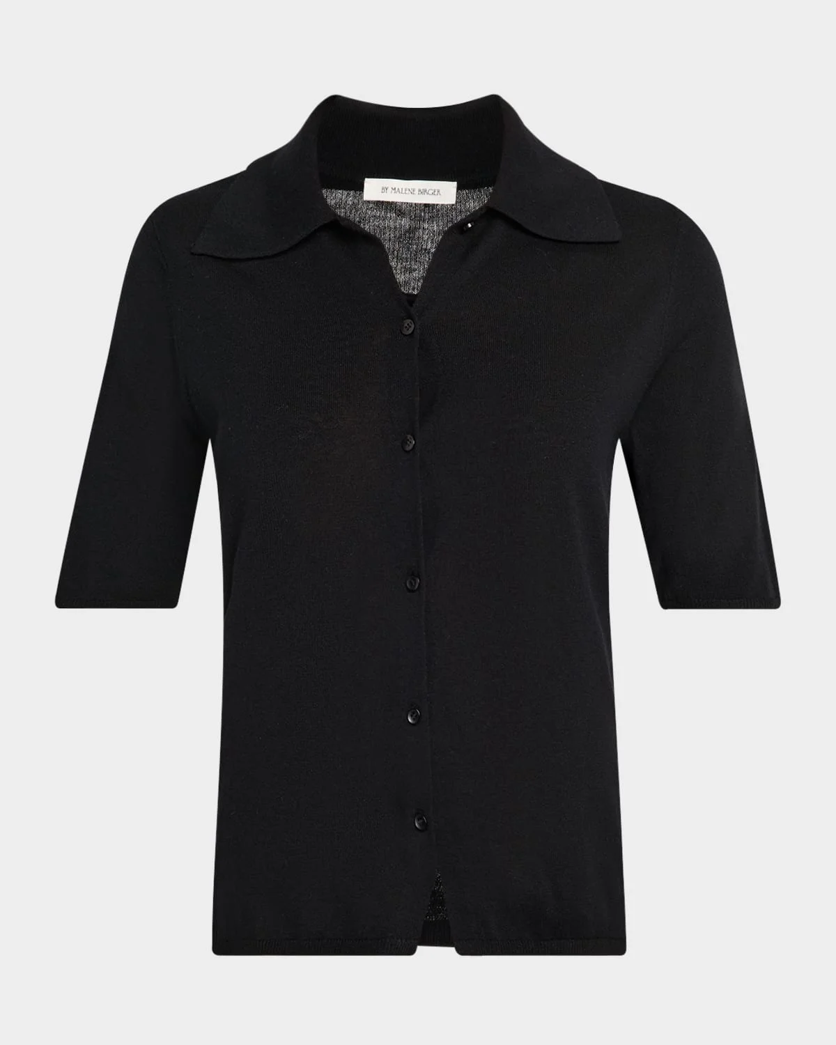 - By Malene Birger "Dotta" blouse made in a lightweight blend of wool and silk - Spread collar; button front - Short sleeves - Relaxed fit - Lyocell/wool/silk - Dry clean - Imported