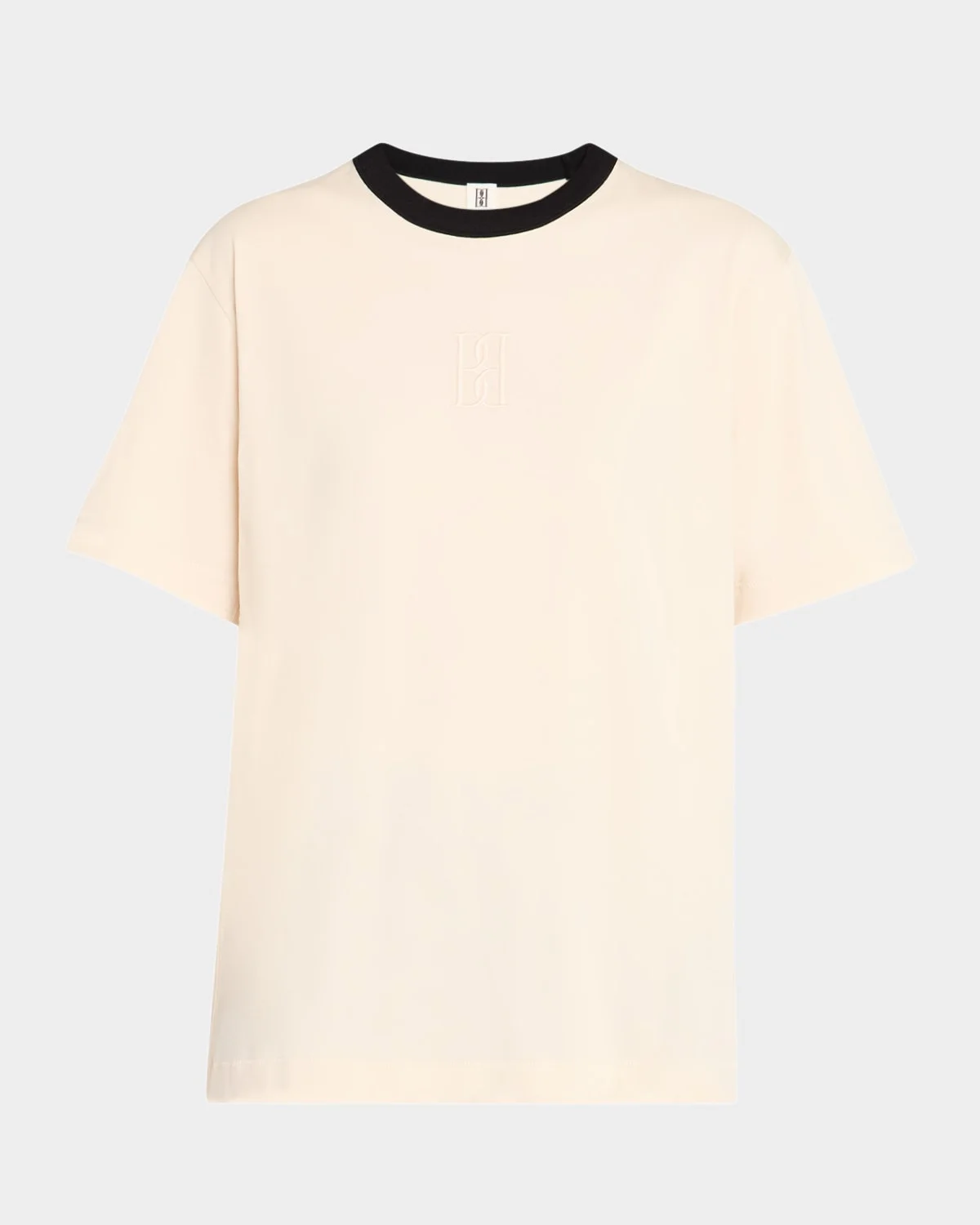 - By Malene Birger "Fayeh" signature T-shirt features a tonal embroidered monogram center and a contrast neckline - Crew neckline - Short sleeves - Oversized fit - Pullover style - Organic cotton - Machine wash cold - Made in Portugal