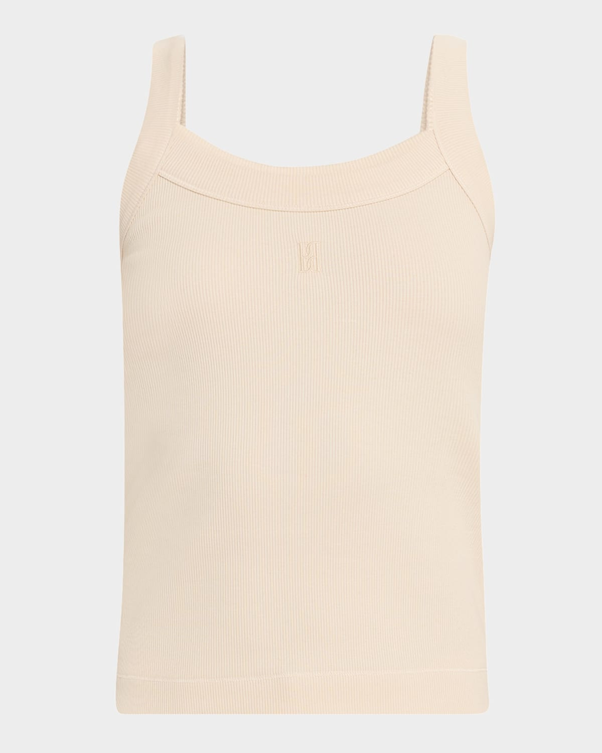 - By Malene Birger "Frillio" ribbed tank with embroidered monogram logo - Scoop neckline - Sleeveless - Relaxed fit - Pullover style - Organic cotton/elastane - Machine wash cold - Made in Portugal